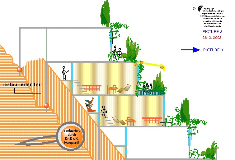 der restaurierten Fläche erinnert eine gläserne Plakette mit
