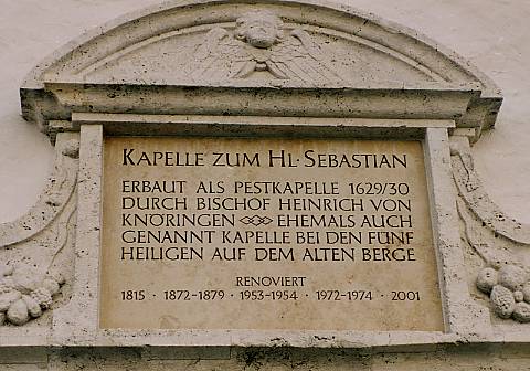 Sebastianskapelle Aislingen (Sponsor: Institut für Wirtschaftsökologie) Hoch über Aislingen befindet sich auf einem mittelalterlichen Erdhügel (Motte) die barocke Sebastianskapelle. Diese Kapelle steht zwar im Bereich eines römischen Kastells, doch die heute noch sichtbaren Wallanlagen dürften aus dem 10. Jahrhundert stammen (aus der Zeit der Ungarn-Einfälle). (Text nach Sailer) Inschrift über dem Eingang