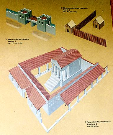 Tempel Faimingen (Sponsor: Institut für Wirtschaftsökologie) In Faimingen (Stadt Lauingen) befindet sich der teilweise rekonstruierte Tempel des keltoromanischen Heilgottes Apollo Grannus. Rekonstruktionsplan