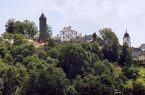 Blick auf Lichtenberg (Sponsor: Institut für Wirtschaftsökologie) Wenn man sich von Norden dem Ort Lichtenberg nähert, imponieren schon von weitem der mächtige Burgturm und der Turm der Kirche. (Text: K. Marquardt)