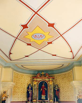 Hinterried - Buttenwiesen (Sponsor: Institut für Wirtschaftsökologie) Die kleine Dorfkapelle St. Stefan in Hinterried birgt die "Anbetung der Könige" von 1510 von Martin Schaffner. (Text nach Sailer) Deckenmalerei