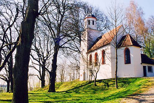 Hohenreichen - Stadt Wertingen (Sponsor: Institut für Wirtschaftsökologie) Nur die Burgkapelle der "Edlen von Richen" und später derer von Pappenheim hat die Burg überdauert. Bekannt ist der darin befindliche Flügelaltar von 1515. (Text nach Sailer) Burgkapelle von Hohenreichen