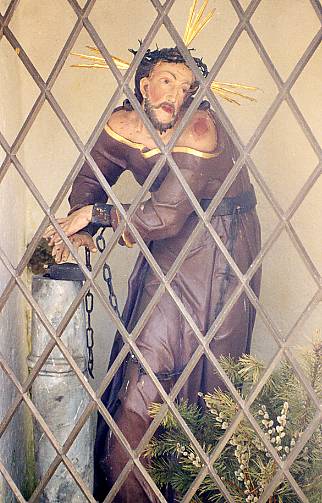 Fronhofen - Markt Bissingen (Sponsor: Institut für Wirtschaftsökologie) Auf dem Michelsberg bei Fronhofen sind mehrere mittelalterliche Burgplätze zu erkennen. Eine Kirche, ein Kreuzweg, eine kleine Kapelle und eine Höhle vervollständigen die Eigenart dieser Jurahöhe. (Text nach Sailer) Kapelle auf dem Michelsberg bei Fronhofen