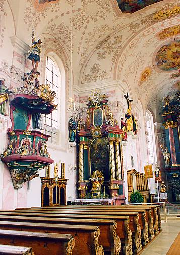 St. Martin-Kirche Pfaffenhofen (Sponsor: Institut für Wirtschaftsökologie) Die St. Martin-Kirche in Pfaffenhofen wird auch als "Dom des Unteren Zusamtales" bezeichnet, ein richtungsweisenden Werk von Johann Schmuzer aus Wessobrunn. (Text nach Sailer) Innenansicht